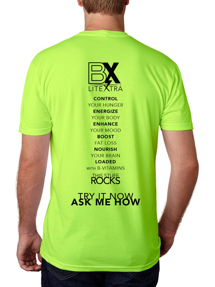 Energize your wardrobe with this stylish shirt featuring the DAILY ENERGIZER energy bolt on the front and the B-LITE bullet points on the back. This shirt is fabric laundered for reduced shrinkage and comes in sizes XS-XXL. All sizes/colors may not be in