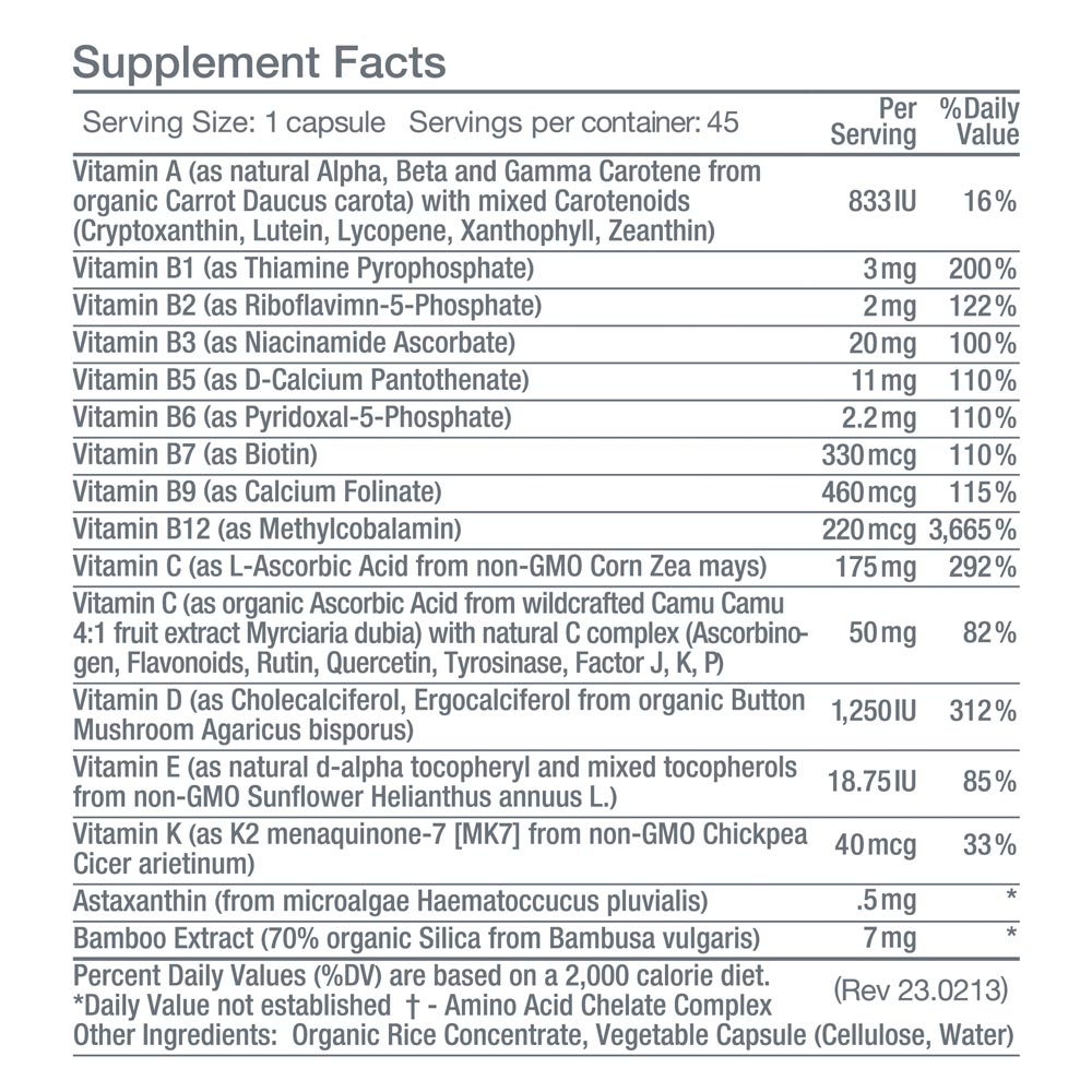 with Essential Vitamins, Organic Carotenoids, and Bamboo Silica.
